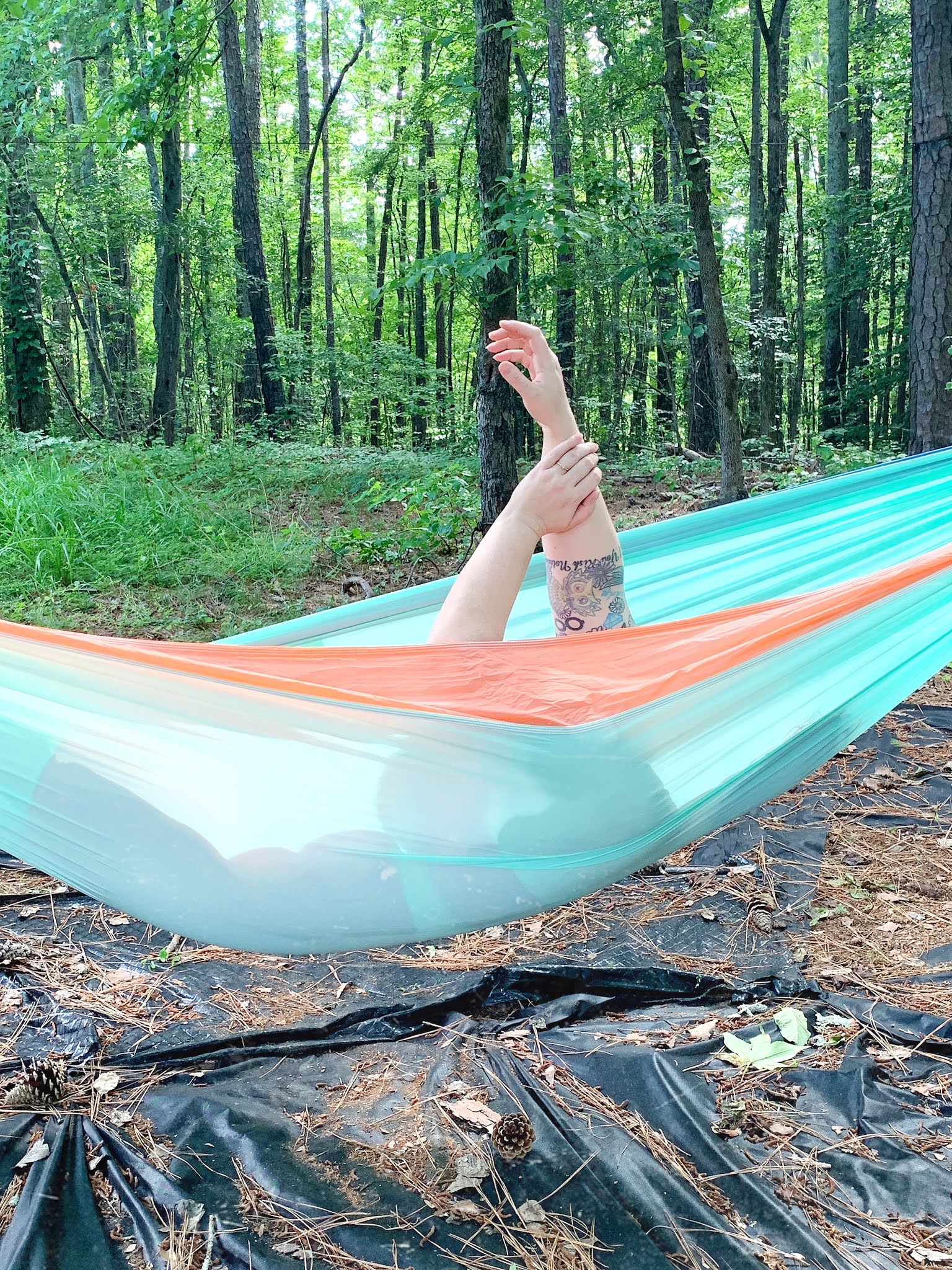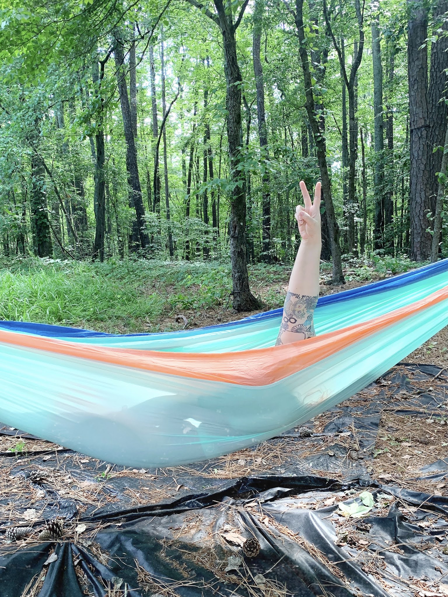 I've wanted a hammock for such a long time, but I've always been so afraid that a hammock would not hold my body weight. I never wanted to just fall to the ground and break myself. But Nakie hammocks hold over 400 pounds, so I felt safe trying it out. But I actually had no idea what I was doing when I hung the hammock for the first time. I set it up so that when I was sitting in it, it was about a foot from the ground. I got used to that and then I moved it up quite a bit higher so I could really just hang. It was so lovely.