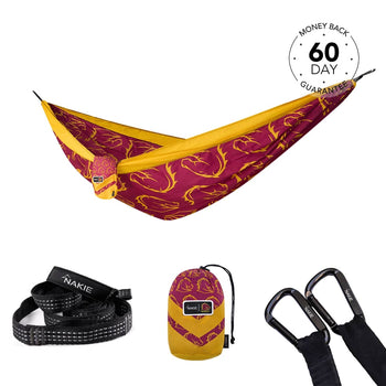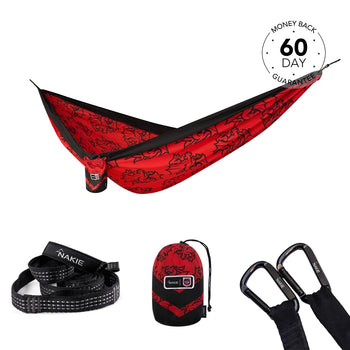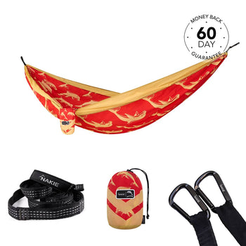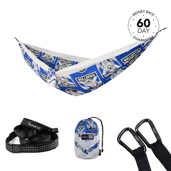 NRL Parramatta Eels x Nakie Double HammockDimensions: 3m × 1.8mWeight rating: 225kgWeight: 600g 2 × Hammock StrapsLength: 2.3m per strapWeight r...