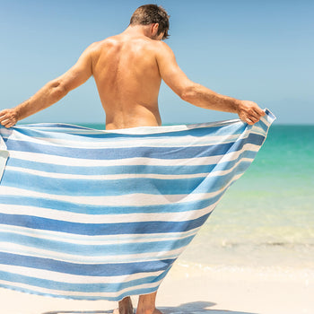 Nakie's towels have a unique feel due to their material blend. They combine the smoothness of polyamide with the practicality of recycled plastic, making them comfy while still being great at repelling sand, lightweight and quick dry. Many of our customers are surprised at how good and soft they feel, read our reviews to see what others think!