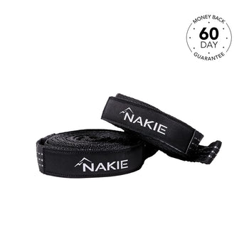 Just yourself and two trees! Each Nakie hammock comes standard with no knot straps and carabiners for an easy no fuss set up. You do not need any extra equipment. Setting up your own hammock is very easy. Our current record is 27 seconds! With our no fuss straps and carabiners you won’t need to tie a single knot. Setting up a Nakie hammock is straightforward. Here’s how to do it in a few simple steps: - Find Two Anchor Points: Look for two sturdy trees (or posts) about 10-15 feet apart. Ensure they’re healthy and can support your weight—trees should be at least 6 inches in diameter to avoid damage or risk - Loop the Straps: Take the provided tree straps and wrap each one around a tree at about head height (around 5-6 feet up). Feed the end of the strap through its own loop and pull tight to secure it. Nakie hammocks come with reinforced straps designed to be tree-friendly, so they won’t harm the bark. - Attach the Hammock: Clip each end of the hammock to the straps using the included carabiner clips. Nakie straps have multiple loops, so you can adjust the tension by choosing different loops—start with one in the middle. - Test and Adjust: Sit in the hammock to check the height and comfort. The middle should hang about hip level, with the ends at head height, to create a cozy curve. If it’s too low or tight, adjust the clips on the straps or raise/lower the straps on the trees.