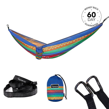 Crafted with triple stitching & uniquely designed polyester end straps for increased strength and durability, a Nakie hammock is built to last lifetime. Each Nakie hammock is made from the absolute best quality money can buy and comes with a lifetime warranty and 30 day money back guarantee. So what are you waiting for?