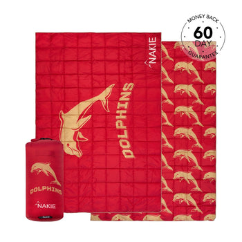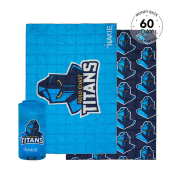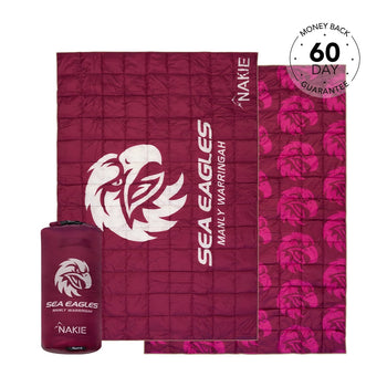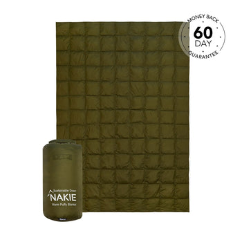 Whilst our Nakie blankets are not 100% waterproof they are water resistant. he blankets outer shell is made from 90/10 DWR fabric - this means that when our blanket was sprayed with water in testing 90% of the fabric remained dry AND the blankets water resistance was unchanged after 10 washes! This also provides excellent stain resistance. In most cases water will bead off your blanket rather than being absorbed, unless it is fully submerged or completely saturated. This is usually more than enough protection from the elements and the blanket will easily handle some light showers or condensation.